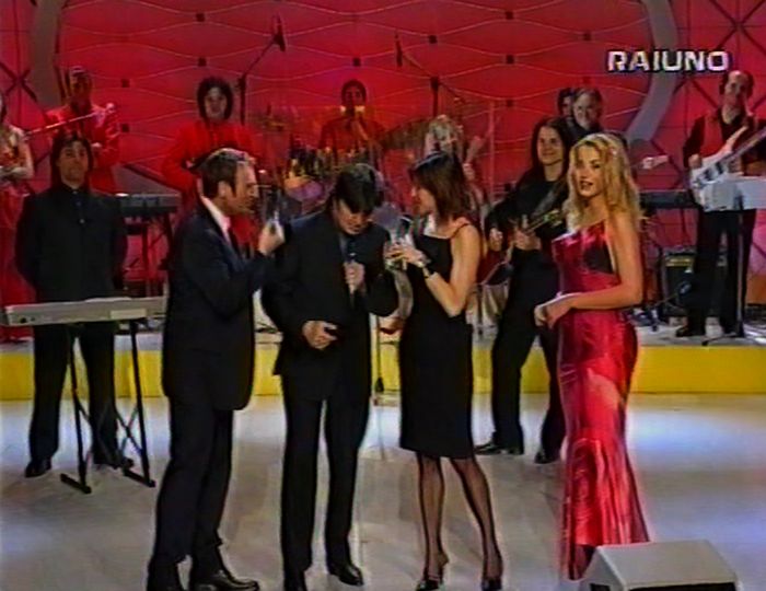 RAI 1 Sanremo AMADEUS con Bobby Solo Alba Parietti Valeria Marini
